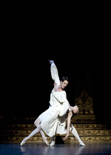 Det unga kärleksparet – i den föreställning jag såg vackert dansat av Laëtitia Pujol och Matthieu Ganio – har dock litet svårt att nå ut. Den tunga inramningen blir för dominerande och dramat förminskas.