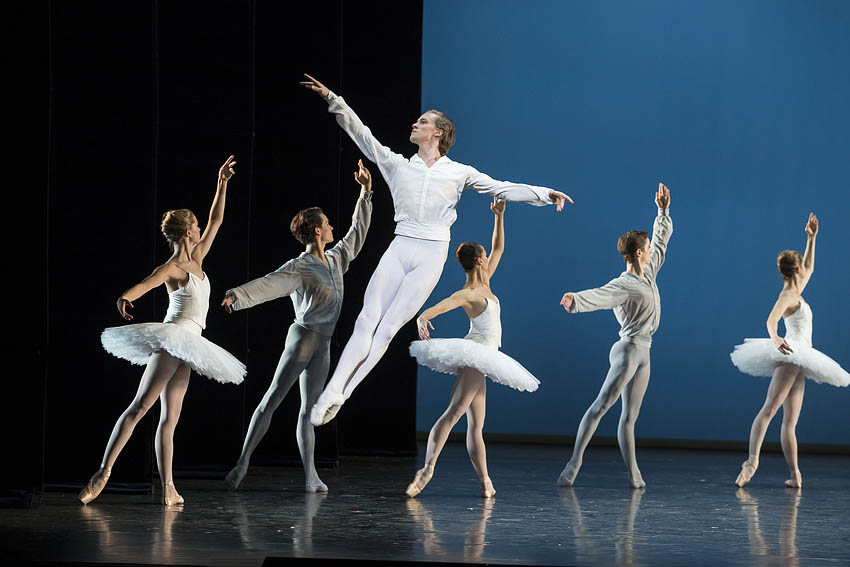 Huvudbild: Jón Axel Fransson med corps de ballet i Etudes. Foto Costin Radu