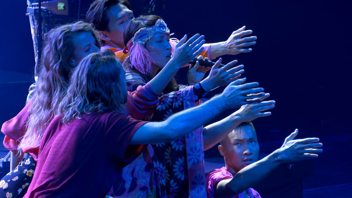 Final med Little Dragon. Dansarna Pascal Marty, Sabine Groenendijk, Christoph von Riedemann, Lee-Yuan Tu och Hiroki Ichinose med sångerskan Yukimi Nagano. Foto Dan Offerlind