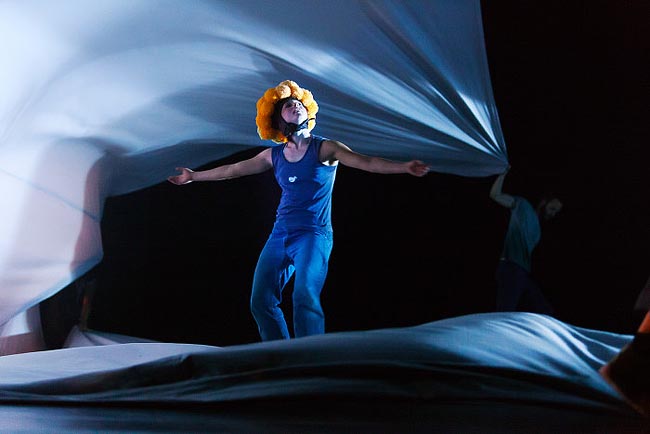 ‘It was very generous of Norrdans and very comforting to have my team framing the performance. I usually start with the frame and my first meeting was with set designer, Signe Krogh. I got this idea that we can have a simple form, a cloth to become both the sky and earth. One piece that moves beautifully and binds the dancers together. It’s proved to be a great dance partner.’