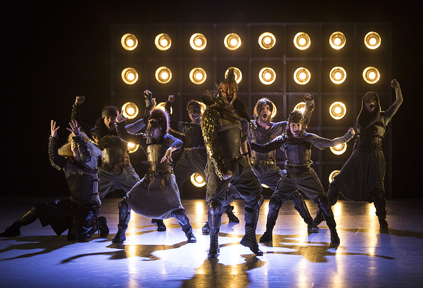 Föreställningen inleds på ett fascinerande sätt då koreografen, Lenka Vagnerová, bringar dansarna till akrobatikens höjder och djurskinnen bokstavligen flyger. Hon manövrerar skickligt den lilla ensemblen till konfrontation, attack och återsamling i nya formeringar, fulla av explosiv energi som får striden att leva inför våra ögon.