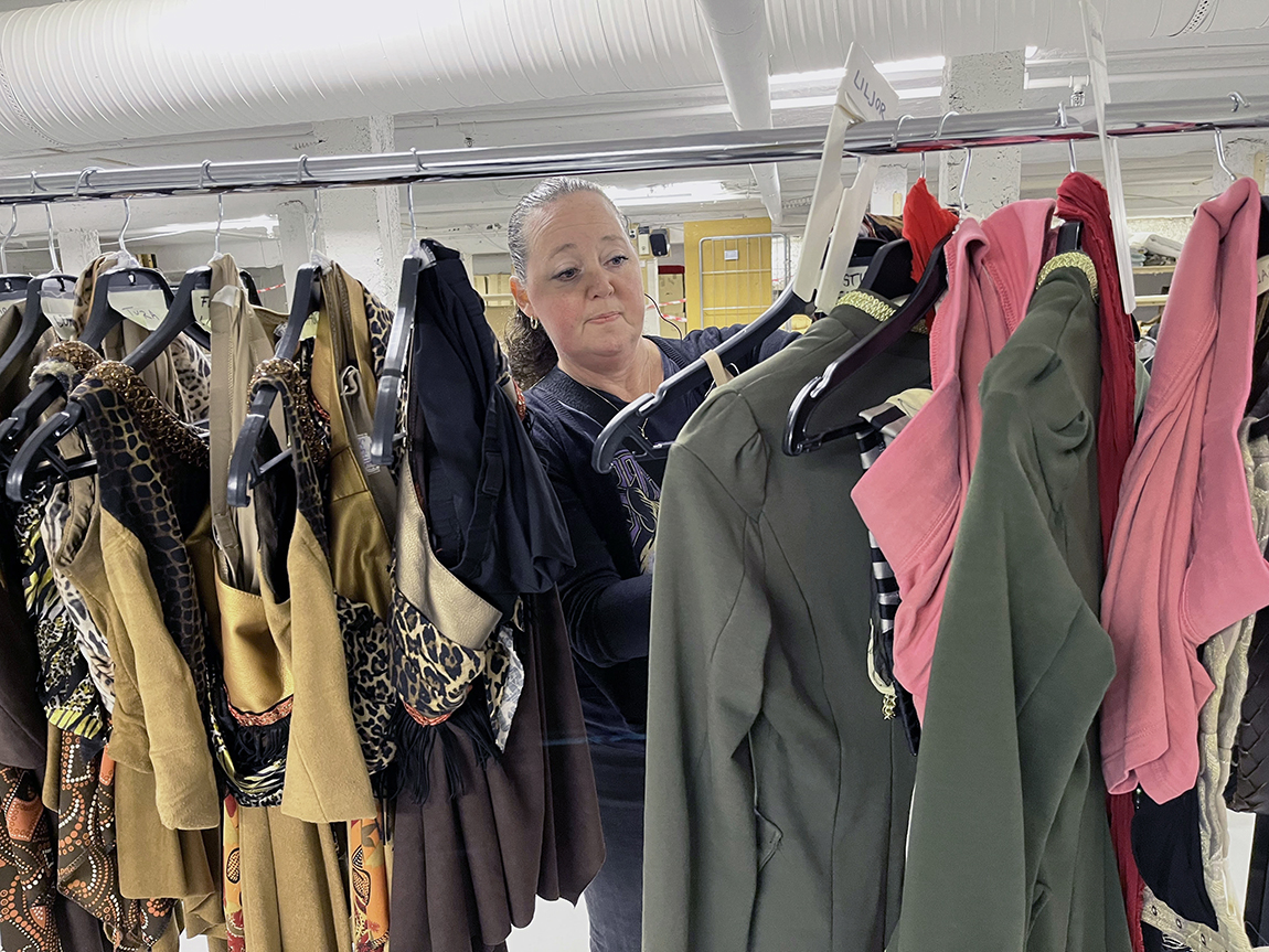 Huvudbild: Lisa synar kostymerna inför kvällen premiär på Peter Pan. Foto Thérèse Eng