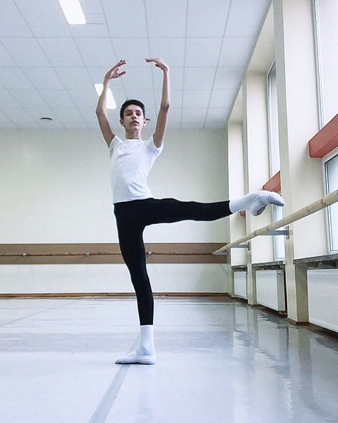 Huvudbild: Edvinas Jakonis i en fin pose i balettsalen. Foto Yakonis Instagram