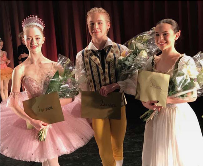 Huvudbild: Juniorvinnarna 2017, från vänster Agnes Rosendahl, Kungliga Svenska Balettskolan, Mattheus Bäckström, Svenska Balettskolan i Göteborg, Samira Bethke, Kungliga Svenska Balettskolan Foto Samira Bethke Instagram