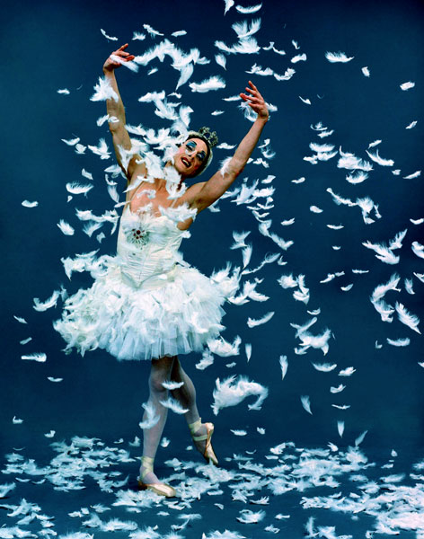 The Pas d’Action from Petipa’s Harlequinade played on the stereotype of effeminate ballet boys and butch ballerinas as partners mixed and matched and it was the tutu clad ballerinas who hoisted their slight partners up into shoulders lifts. Ida Nevasayneva’s (alias Paul Ghiselin) sepulchral looks were ideal for The Dying Swan. The straying spotlight belatedly focuses on the swan, profusely shedding feathers, her spindly legs more like strands of cooked spaghetti than classical bourrees. Her curtain calls overran the length of the solo and were almost another performance.