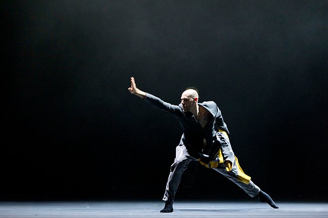 The amber warning light changes metaphorically to red as Jérôme Marchand enters carrying the yellow coat which will mark out his victim. A supremely eloquent dancer, his finely co-ordinated movements make compelling viewing but with just a turn of his head or a gesture of intent he can as well become a creature of such evil he freezes your blood.