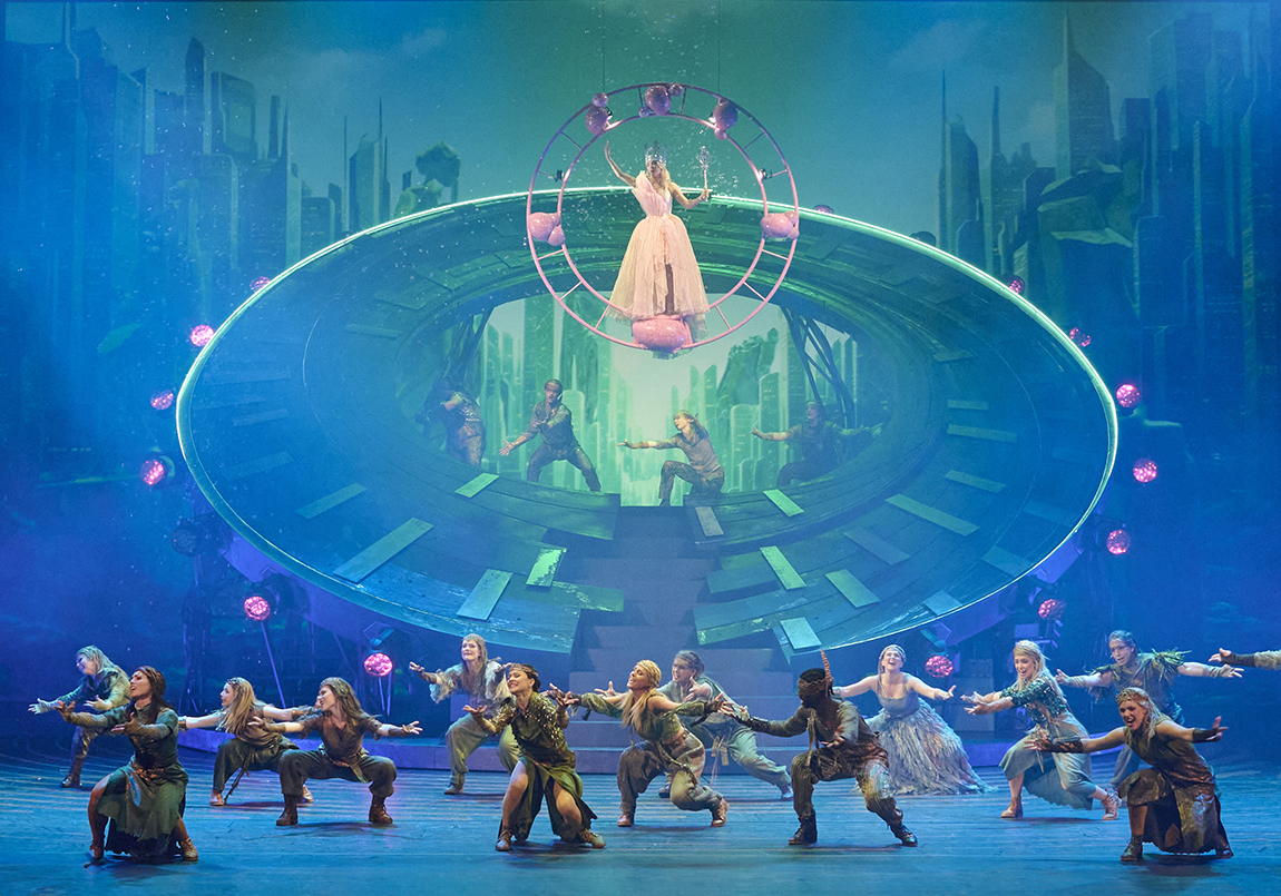 Huvudsida: Inledningsscenen med Glinda i Wicked. Medverkande Anna Salonen och Göteborgsoperans ensemble. Foto Lennart Sjöberg